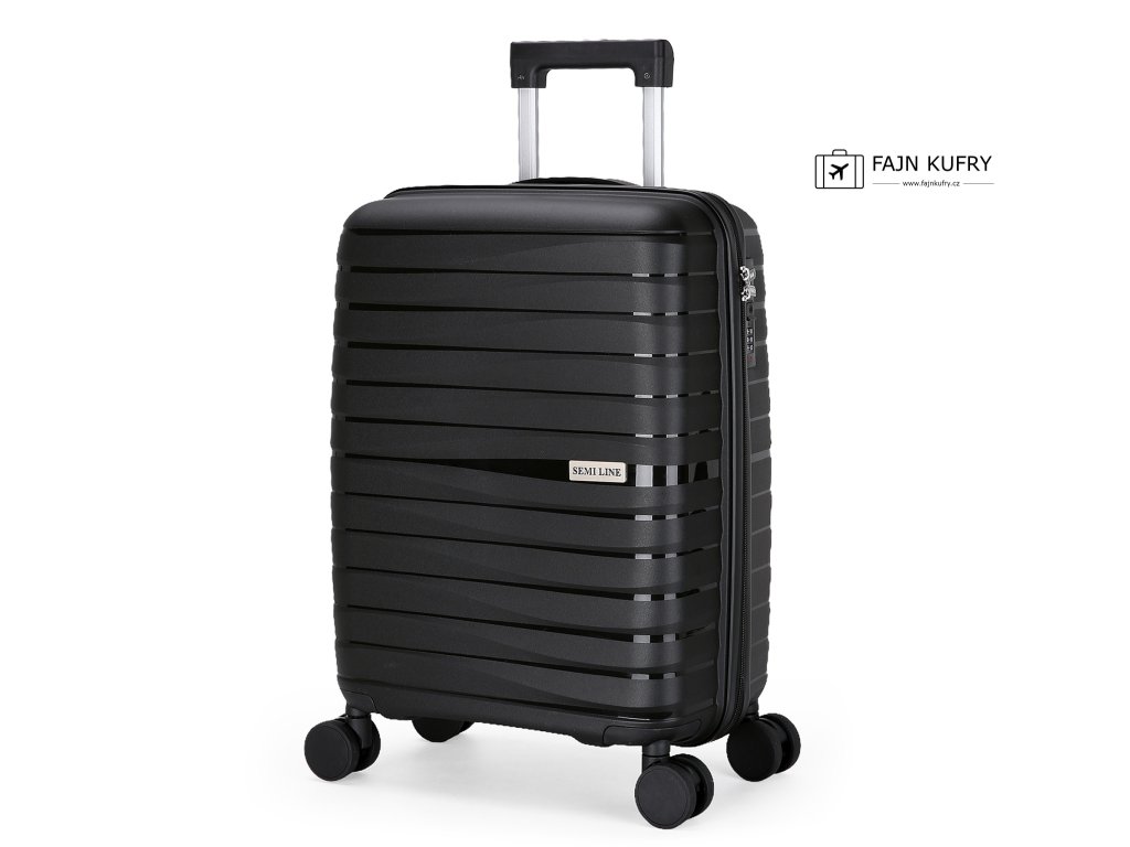 Kabinový kufr SEMI LINE - cestujte s elegancí a bezpečností. Tento jedinečný kabinový kufr je vyroben z prvotřídního polypropylenu a je zaručeně odolný proti rozbití, takže je ideální i pro ty nejnáročnější podmínky na cestách. Černé, stylové povrchové úpravy dodávají kufru charakter a zdůrazňují jeho moderní design. Dvoukomorový vnitřek, vybavený další kapsou, vám umožní efektivně zabalit potřebné věci. Integrovaný šifrovací zámek TSA zabezpečuje vaše zavazadla, zatímco čtyři dvojitá kolečka, která se otáčejí o 360 stupňů, zajišťují snadnou přepravu.